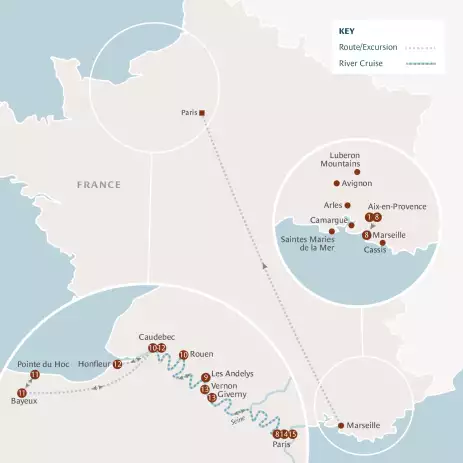 Experience the enchanting beauty of Provence and the historic charm of Normandy on an unforgettable journey through France by land and boat.