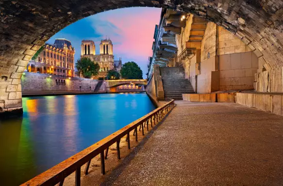 After another leisurely lunch on board, you can explore Vernon’s quaint buildings before embarking on our cruise to Paris. As the sun sets on the shimmering Seine and the Norman countryside recedes into dusk, it’s a perfect time to reflect on your few days cruising among the creamy chalk cliffs and charming villages of this splendid river.