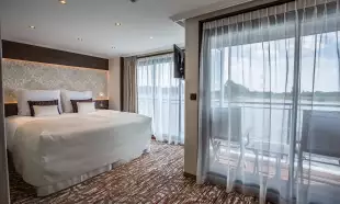 - Luxury accommodation in a river-view cabin or suite, mostly featuring French balconies, with selected cabins offering full balconies.