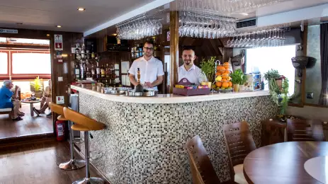 On the ‘Captain’s Dinner’ night, savour specially selected dishes for your enjoyment. After indulging, visit the fully stocked bar that extends into the al fresco area at the stern, providing a relaxed setting for drinks. Whether inside or outside, the restaurant ensures a delightful dining experience, combining comfort, style, and a taste of the region.