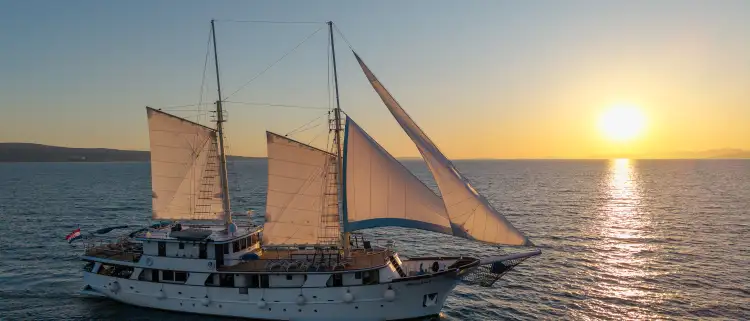 Instantly recognisable and causing quite a stir on the quayside, as you are welcomed aboard by our dedicated crew, you’ll be made to feel completely at home in your elegant surroundings. Delight in the ample and stylish sun deck where you can sit and unwind over a long cold drink and catch up on some reading or chat with your fellow sailors and take in the panoramic vistas as you glide through the glistening water. When it’s time to cool off, take a dip off the ship’s platform straight into the Adriatic’s crystal waters then back on board to dry off in the sun – once you’ve discovered this way to holiday, you won’t look back!
