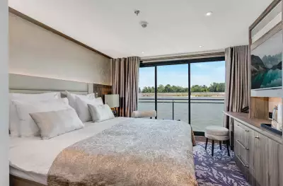Enjoy the comfort of this cabin, complete with floor to ceiling windows, a French-style balcony for stunning river views, and a modern ensuite bathroom.