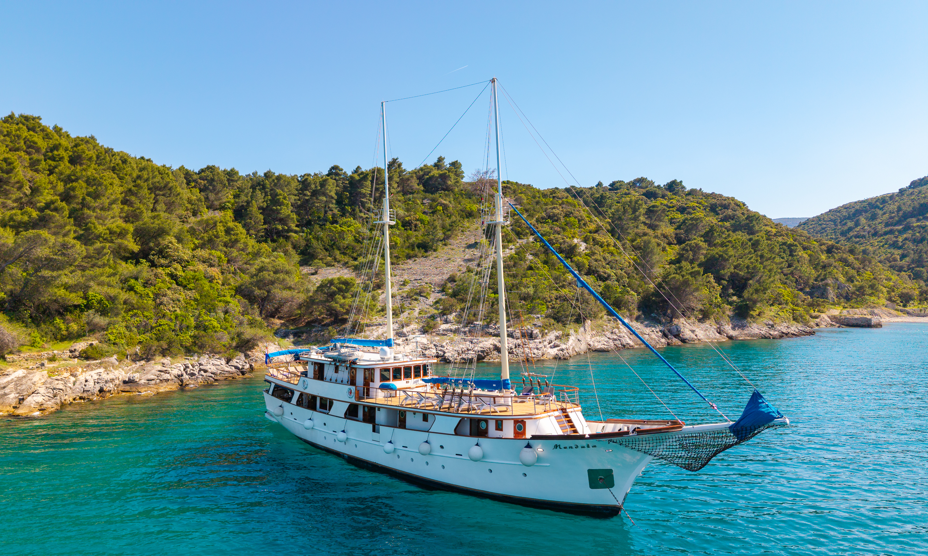 Experience the romance and glamour of a unique holiday at sea aboard our twin-masted charming yacht, the MS Mendula.