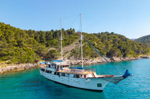 Begin your journey to Split. On arrival you will be met and transferred to Makarska harbour to board your superb ship, the magnificent four-star, twin-masted MS Mendula. As you step on board, you’ll be warmly welcomed by the crew who’ll be on hand to help you settle in and familiarise yourself with this exceptional vessel.