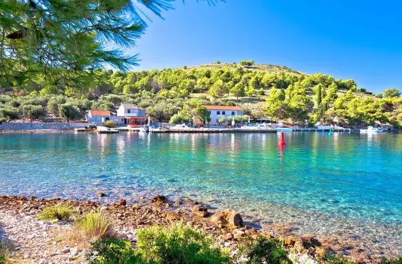 Rising refreshed this morning, the relaxed pace of this cruise continues as we cast off from our picturesque mooring and set sail once more. There is time to enjoy another swim stop on the island of Fumija, where the remains of the early medieval church of St Fumija and crumbling farm buildings of the Benedictine monks of Trogir can still be seen amidst the landscape.
